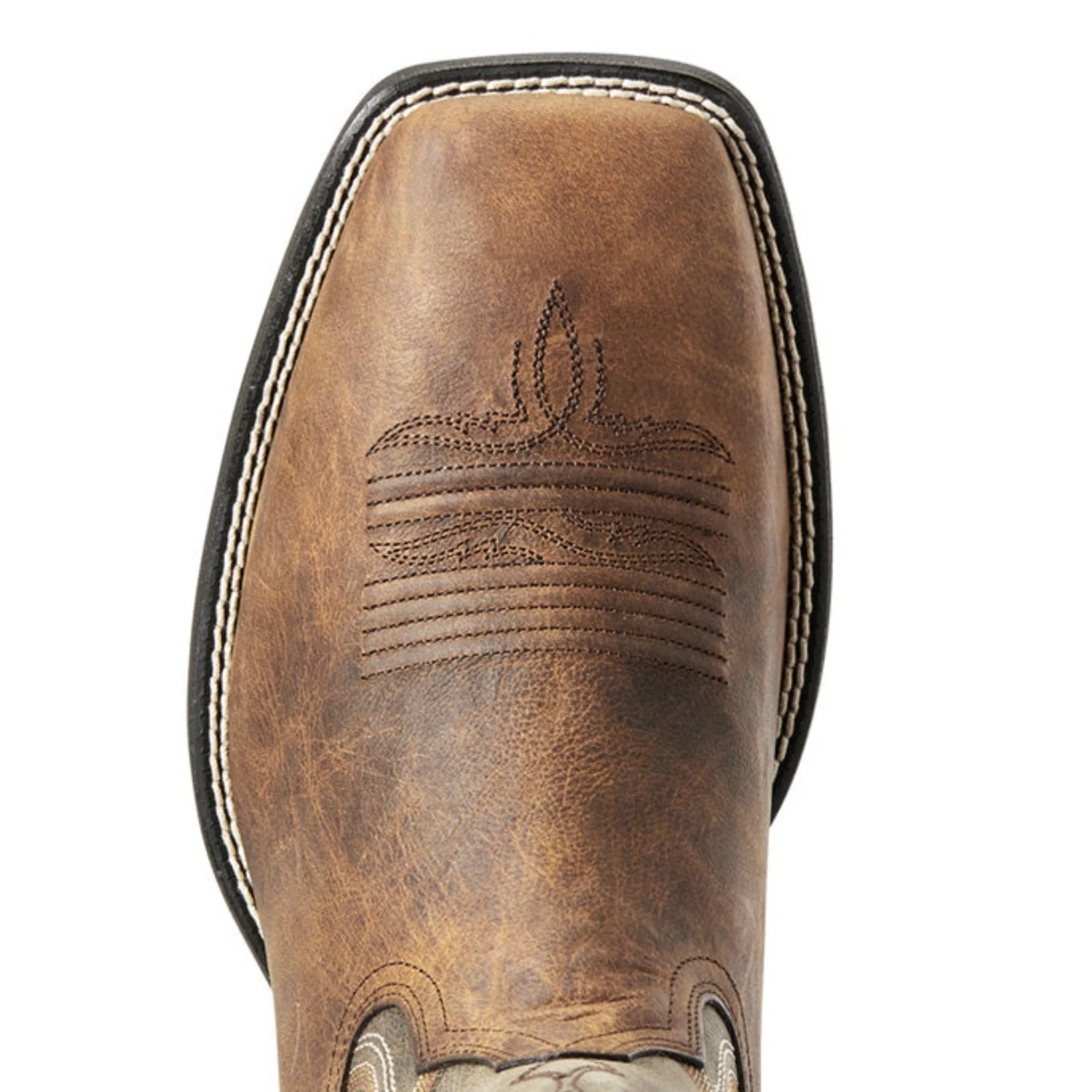 This men’s square toe boot from Ariat features an Army green shaft with orange vibrant stitching! This boot comes with the ATS foot that provides stability and comfort all day long!Â