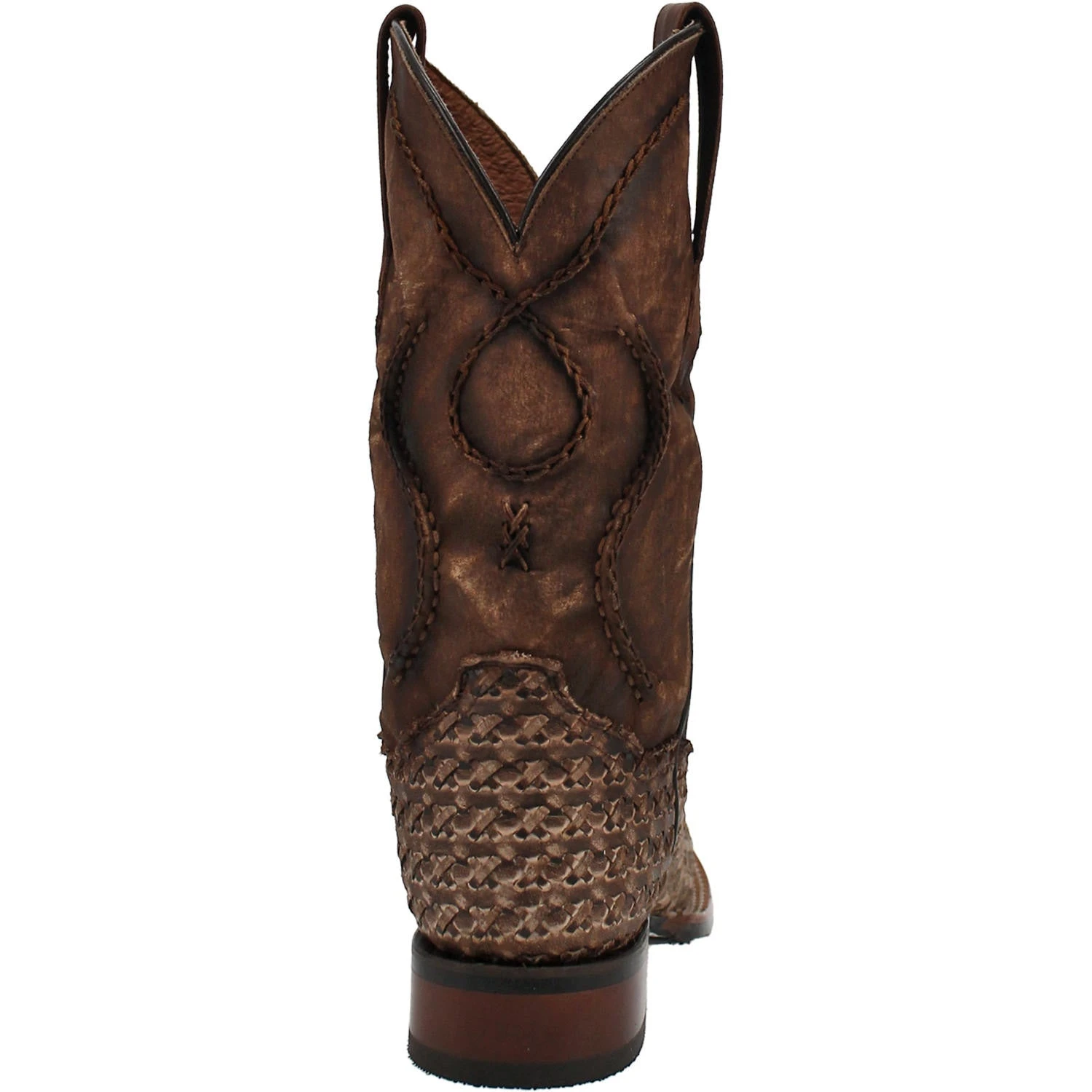 These are for the guy’s that like to tuck your jeans in your boots! Show off the11″ shaft with a raised embroidered design and a weaved wide square toe vamp. Pair them with your favorite jeans tucked in or out.