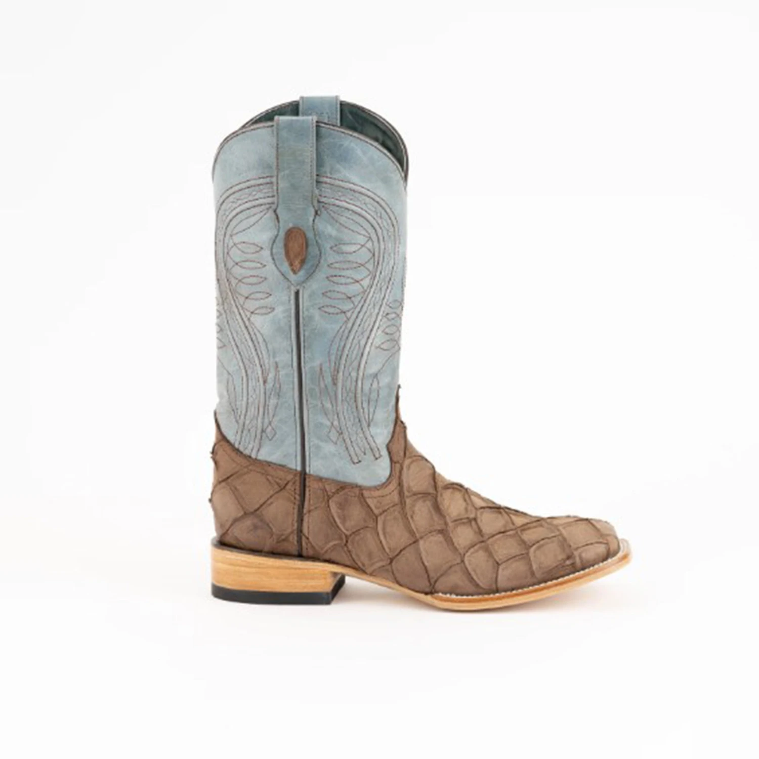 A rugged appearance that keeps both style and comfort in mind. From the bold stitch on the upper to the distinctive print pirarucu vamp, this boot captures the spirit of the west.
