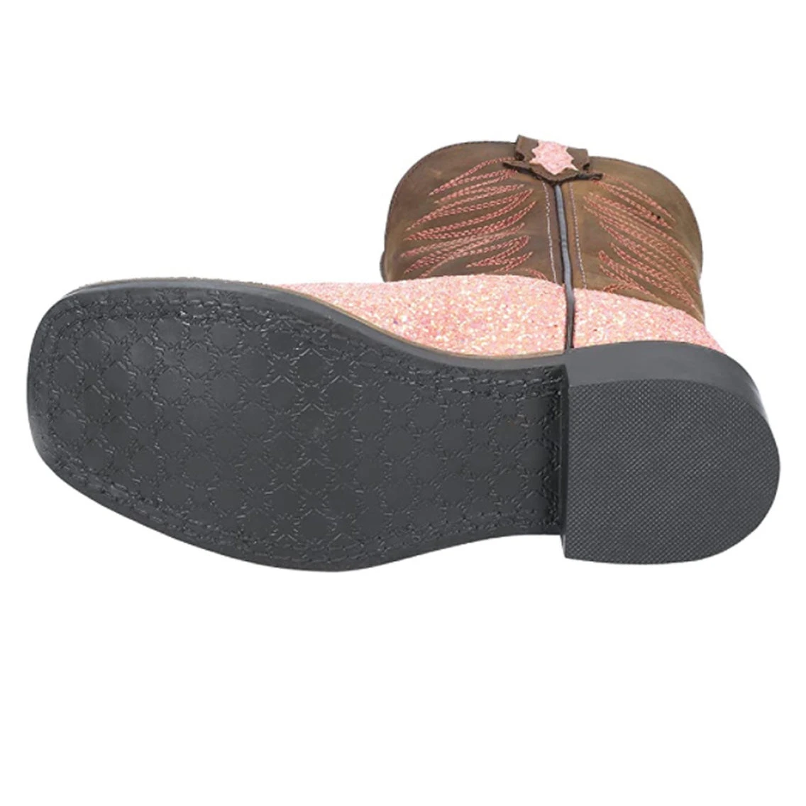 Perfect for your little cowgirl that loves to sparkle. These boots are made of genuine leather and man-made materials with a pastel glitter accent, Each pair comes with a cushioned insole for all-day wear.Â