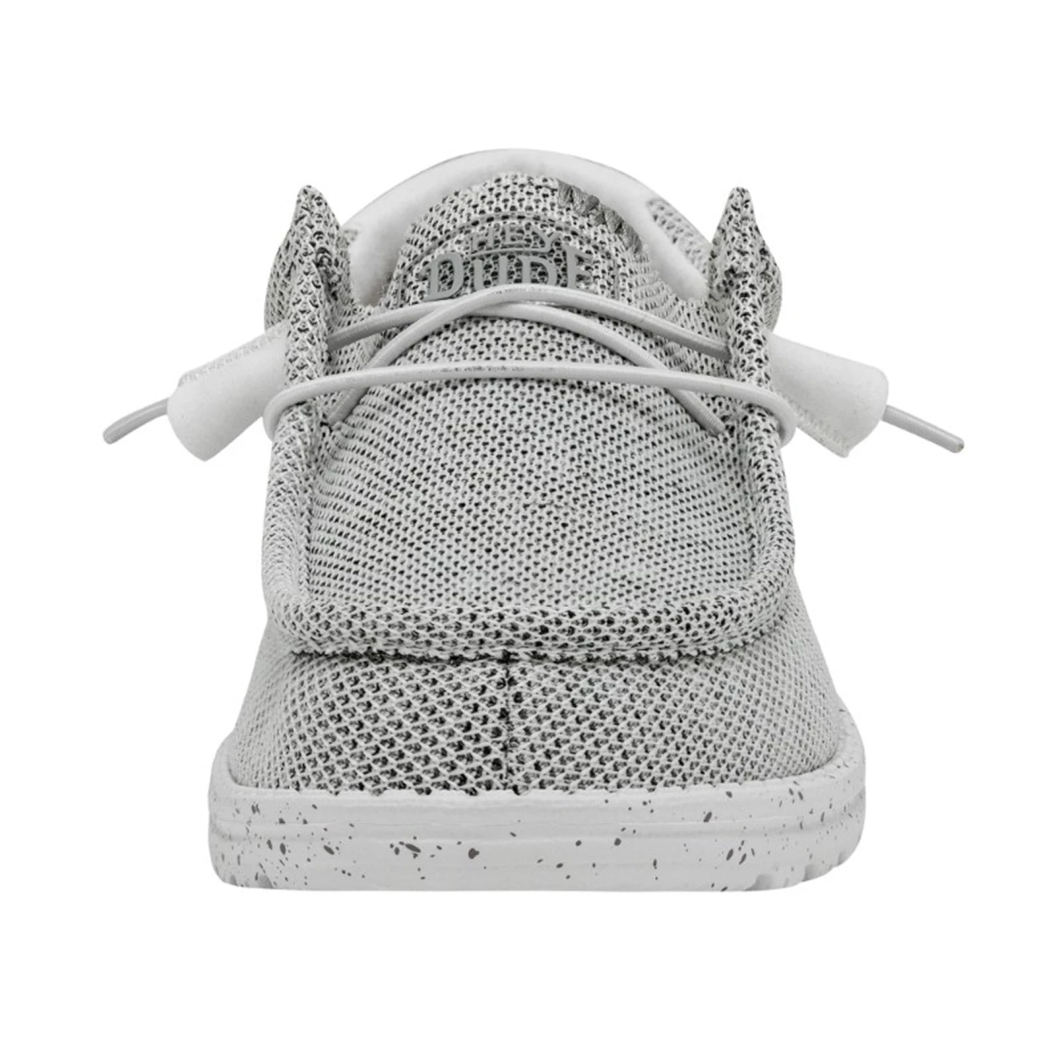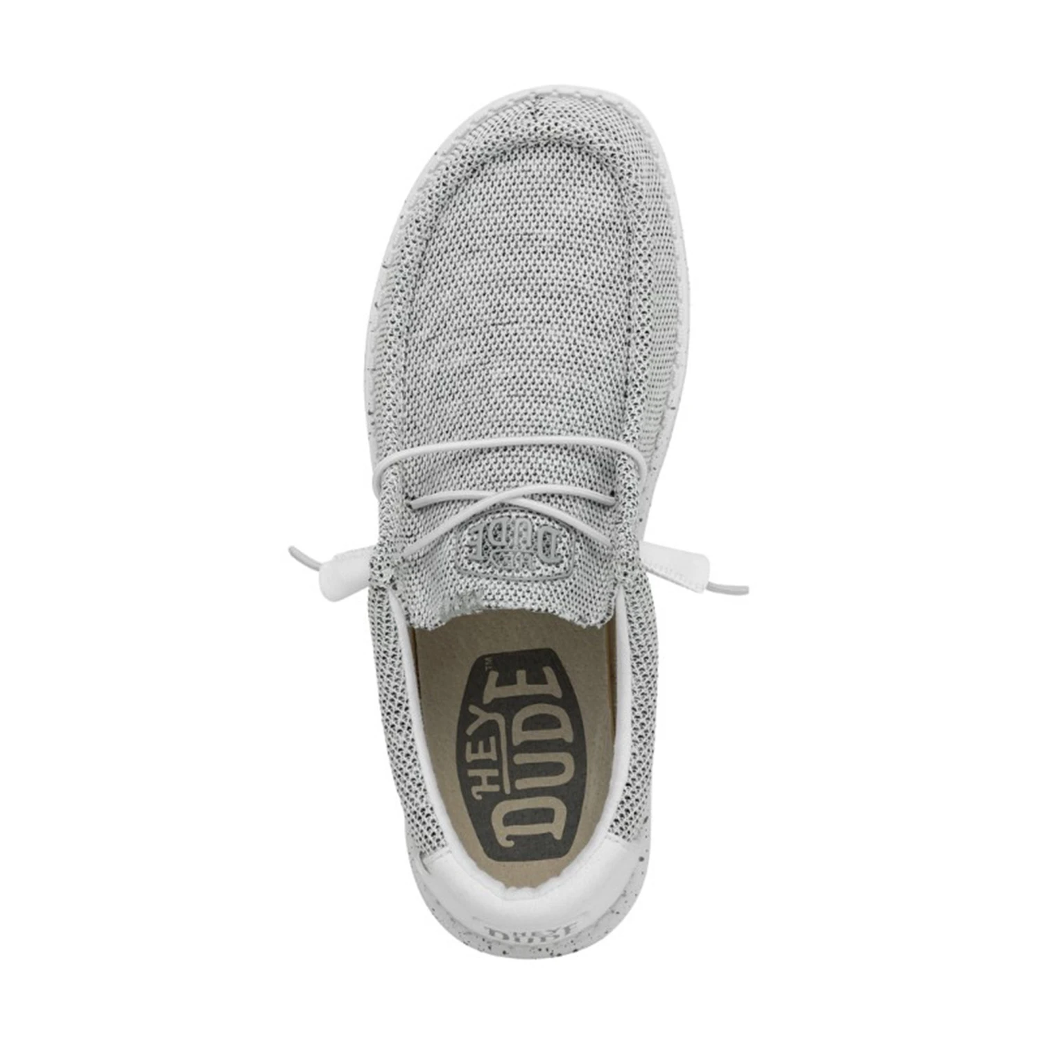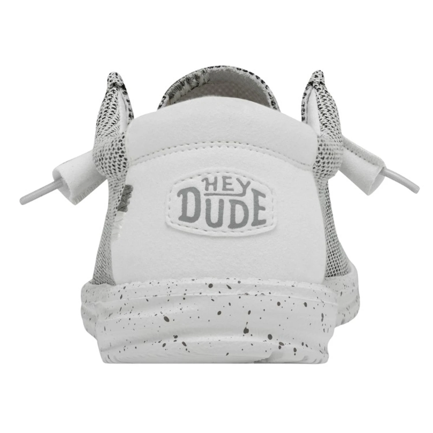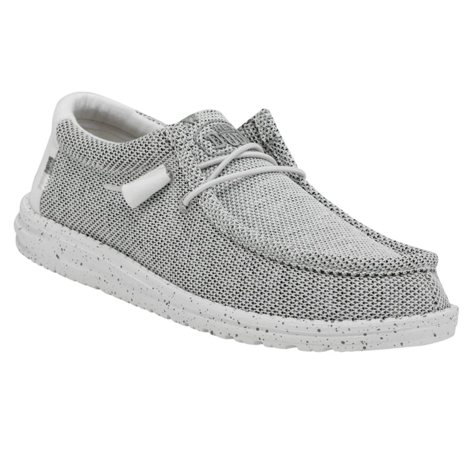These men’s shoes from Hey Dude are stone white with a white speckled outsole. Hey Dude shoes are comfortable and very light weight!