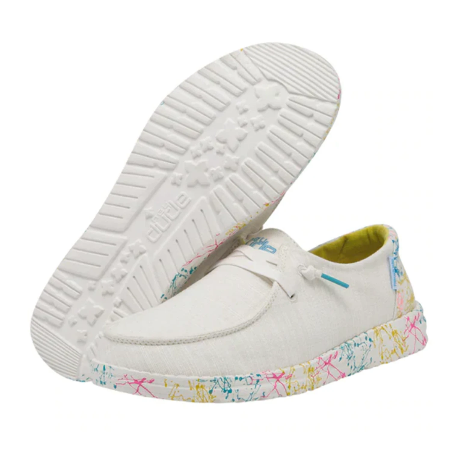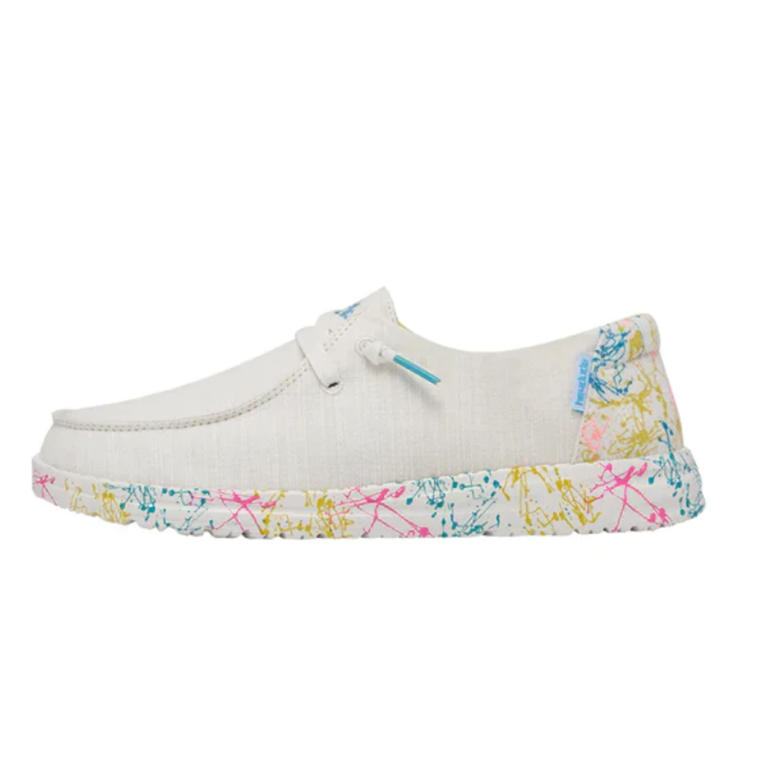 The Wendy Sugar Vibe from Hey Dude, is perfect for summer fun! The splatter paint design gives this classic shoe a fun and fresh vibe! Made for all day wear, these shoes will keep your feet comfy wherever the road leads you.Â