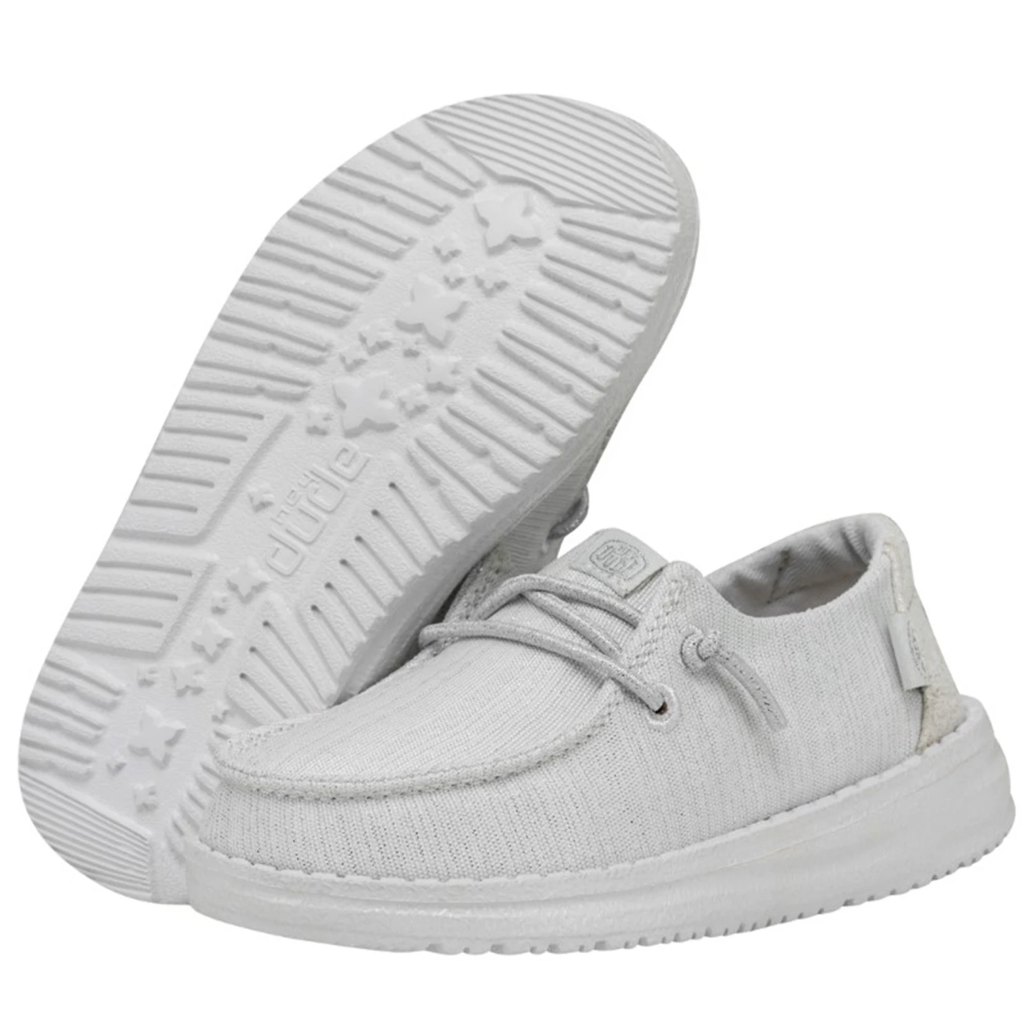 Get kids ready for all of life’s adventures with the Hey Dude Toddler Girls’ Glitter Wendy Slip-On Shoes. These iconic moccasins feature breathable cotton canvas uppers with stretch laces for easy slip-on style. Ultralight outsoles won’t weigh her down.