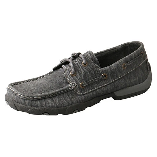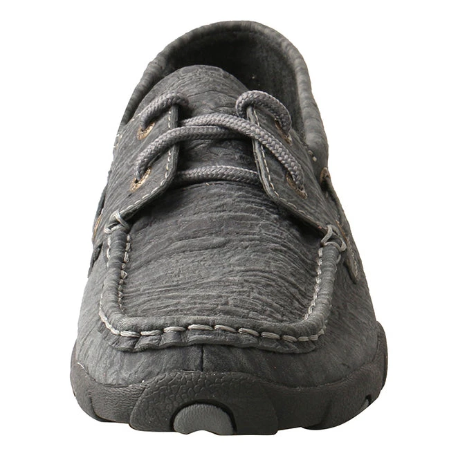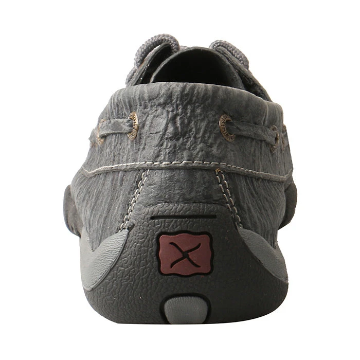 Twisted X brings you this fun charcoal distressed leather driving moc. Twisted X is known for comfort, style, and durability. They offer a machine washable, antibacterial insole.Â